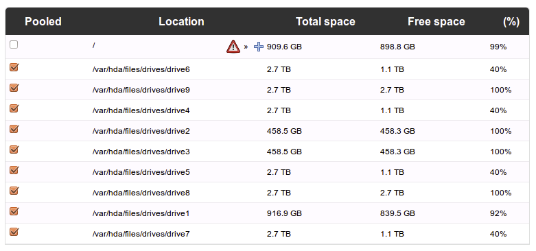 Greyhole also has an option to balance available space among the drives, which I assume means if you added a new drive to the pool, it would shift the files around, so you won’t have one drive that is fully packed, while another is completely empty. The command to do this is sudo greyhole -l, but I haven’t really seen it do much.