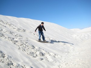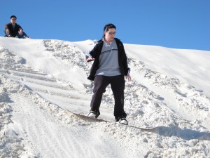 I tried to follow Dave’s (my carving instructor from last year) instructions, managed to go down half the hill with only 1 foot forward, then fell pretty bad. Knee first, followed by 2 flips. After attempting it several more times, and falling forward (not as bad as my 1st fall), I decided that I definitely need knee pads before trying to continue learning to carve. I have no issues falling on my butt, as there’s cushion there, but falling on your knees and wrists hurts really bad, especially after a few falls. Afterwards, I’ve just been seeing how far I can go down the hill without slowing down and changing direction.