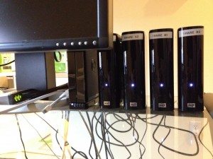 Unofficially, this is also called Project Conserve Energy (for those who might not share my opinion on Mac OSX, you must at least agree conserving energy is good). I’ll be able to power down 3 full computers (hosting a total of 12 HDDs running 24/7) and replace them with 4 power-saving external USB drives.