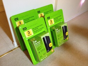 I was initially planning to start this project during holidays, but with the floods in Thailand and the expected hard drive shortages, I decided to get them before the price was blown out of proportion. Costco had a coupon where the Western Digital 3TB drives would be $20 off and when SlickDeals reported the final price was $110, I decided to bite.